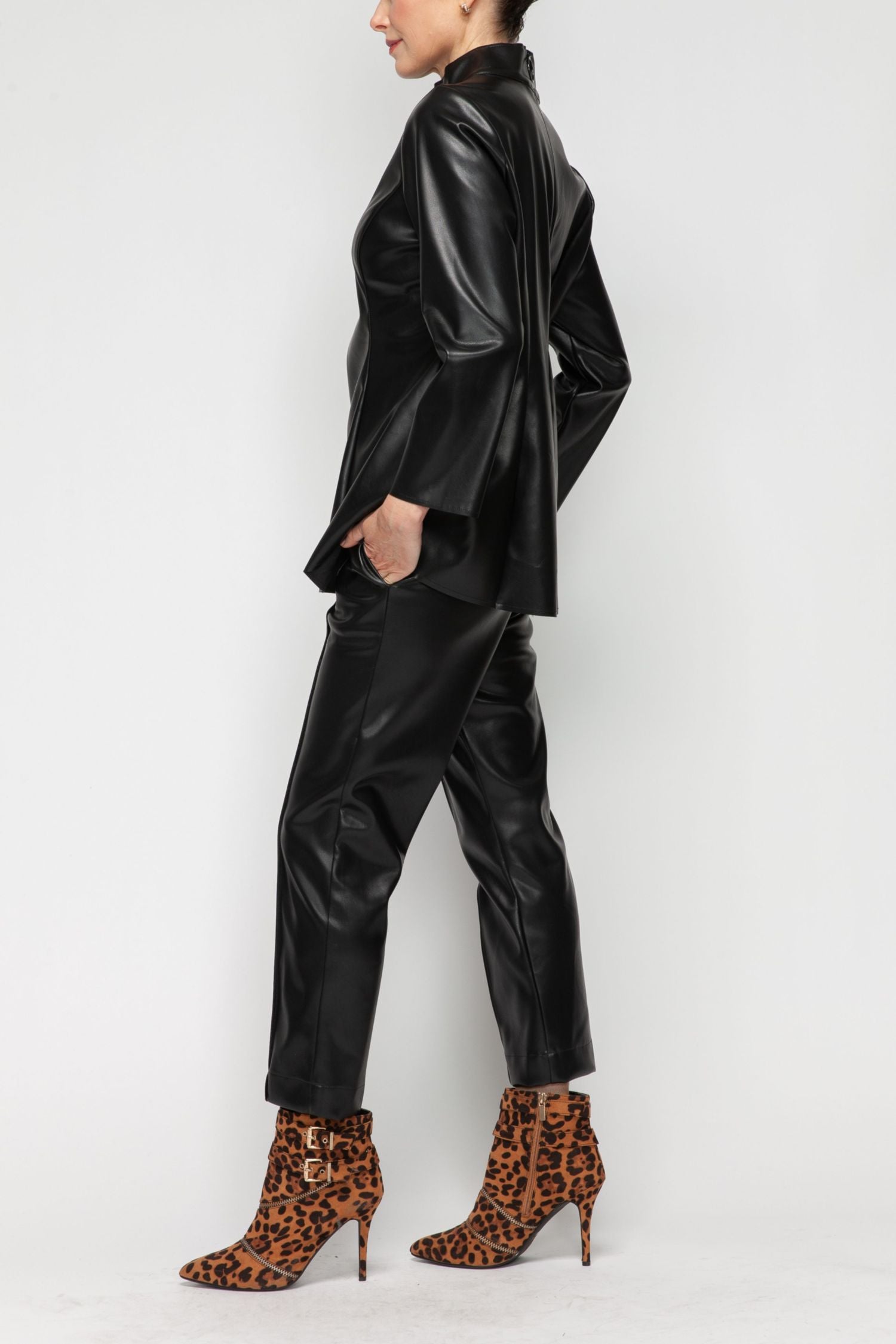 Black Front Pintuck Slim Pants