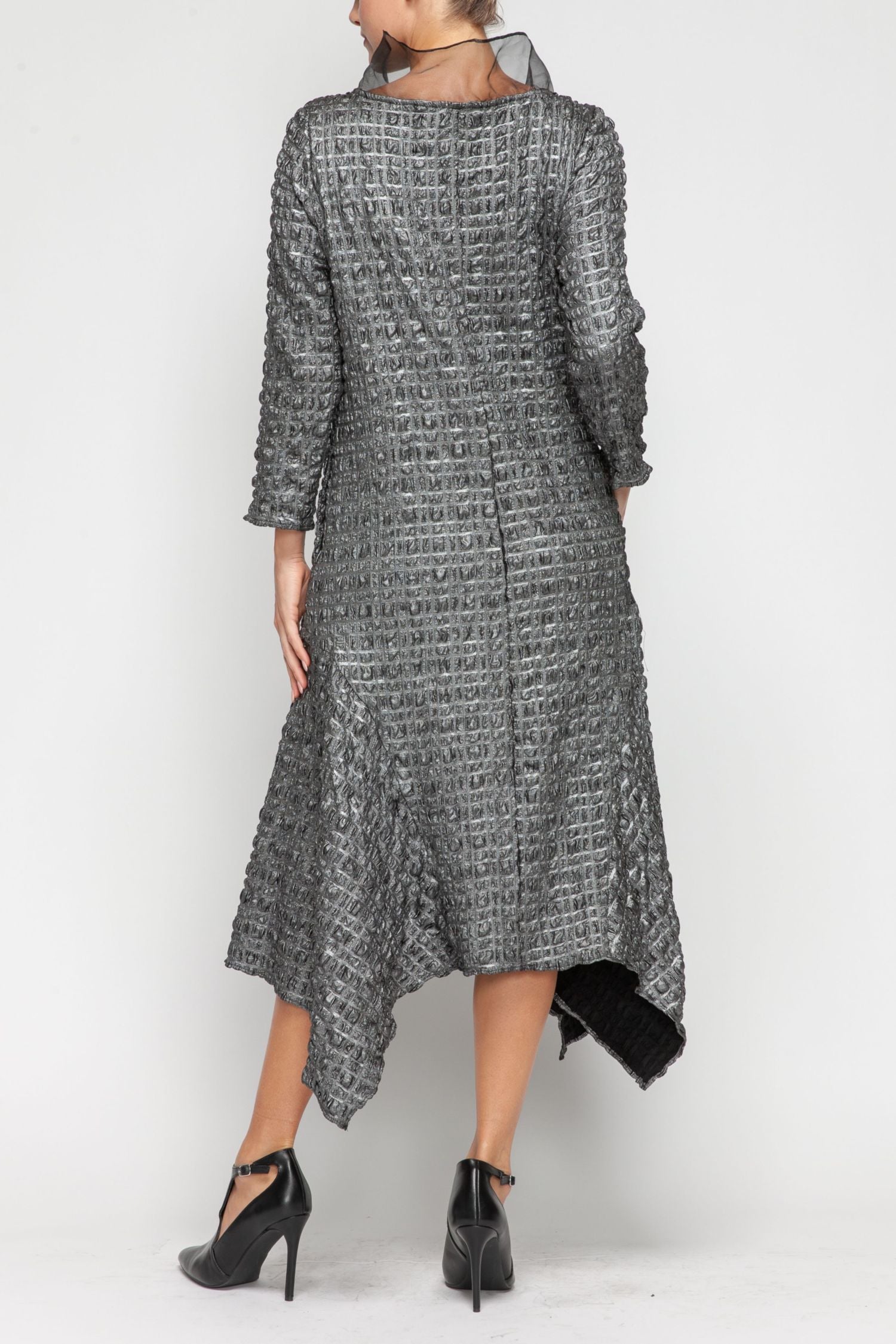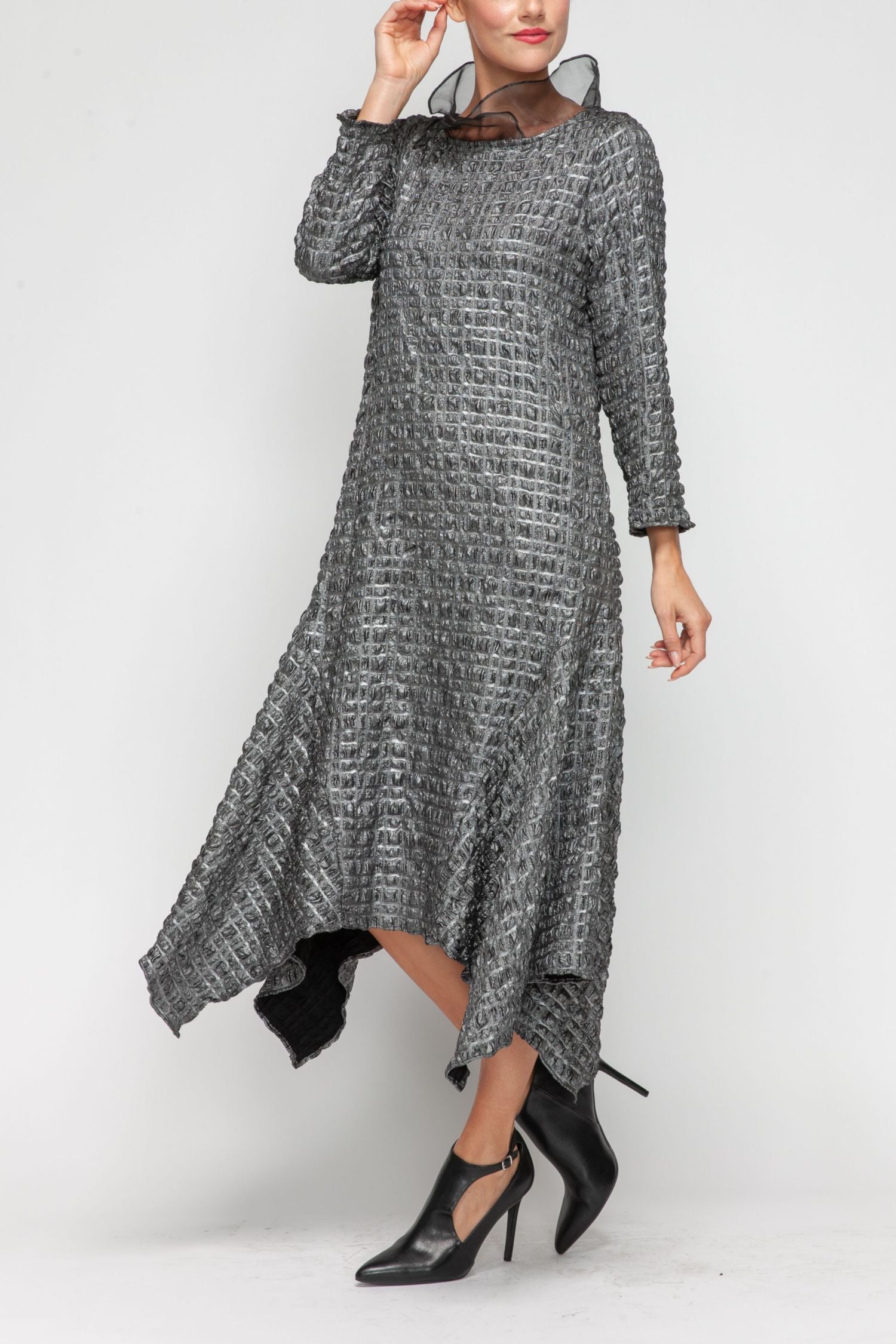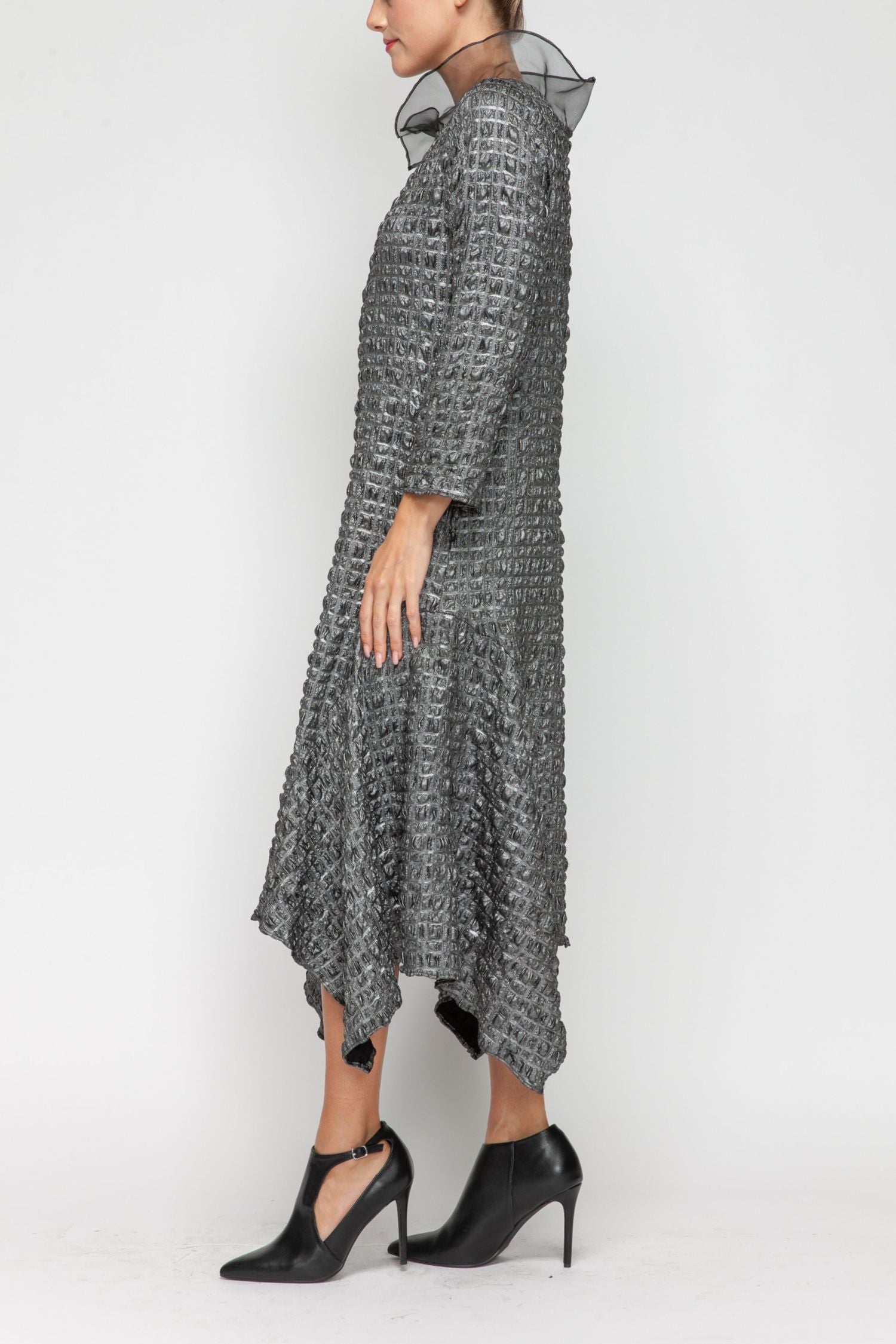 Silver Organza Fly Collar Asymmetrical Dress