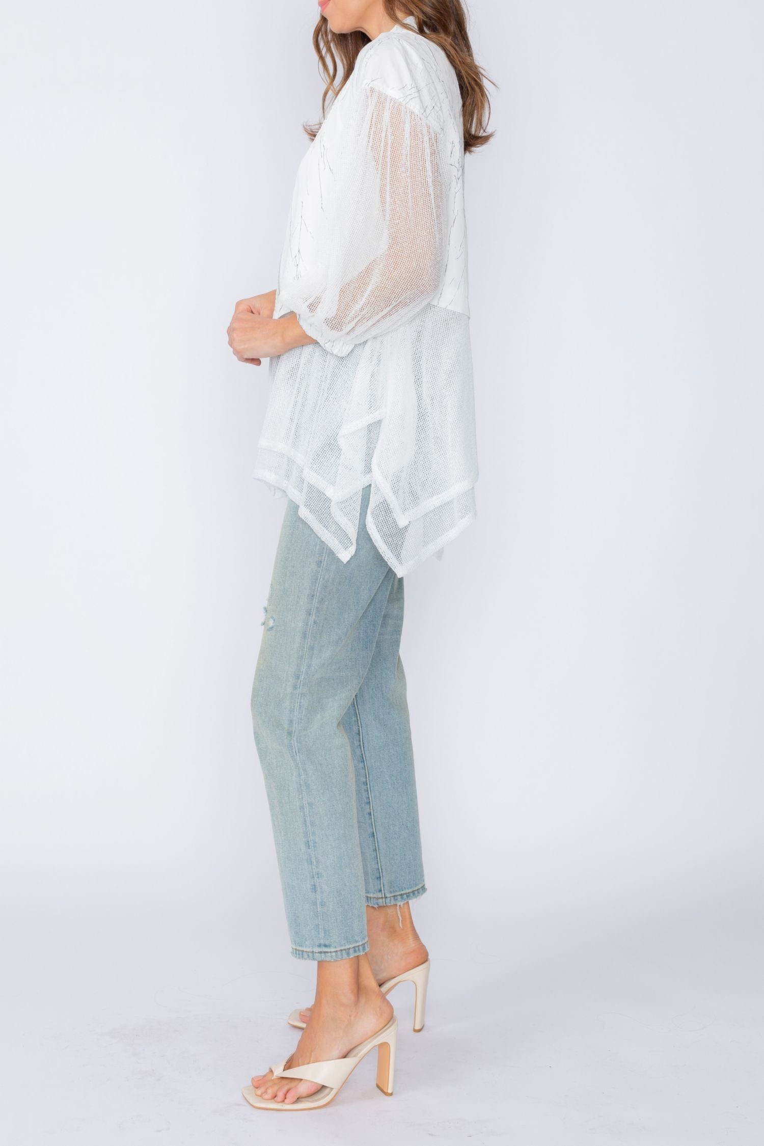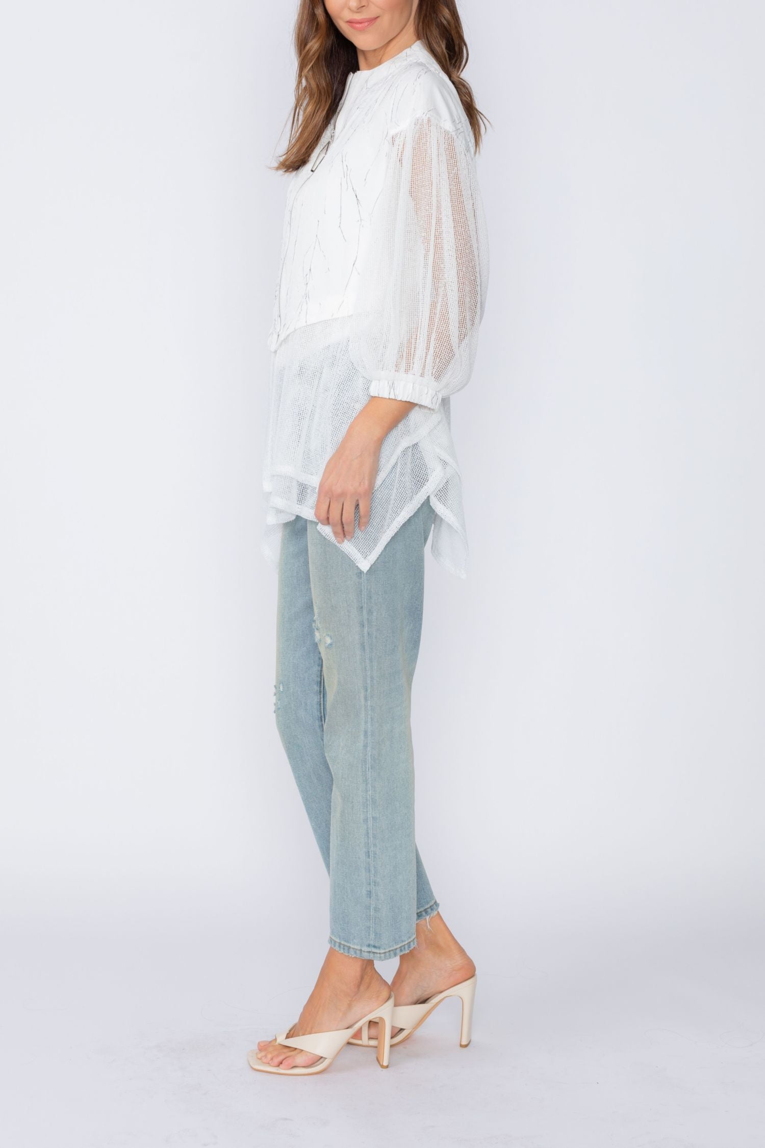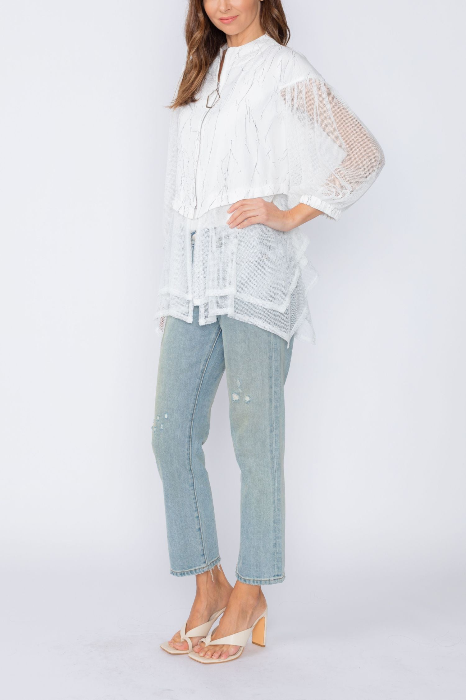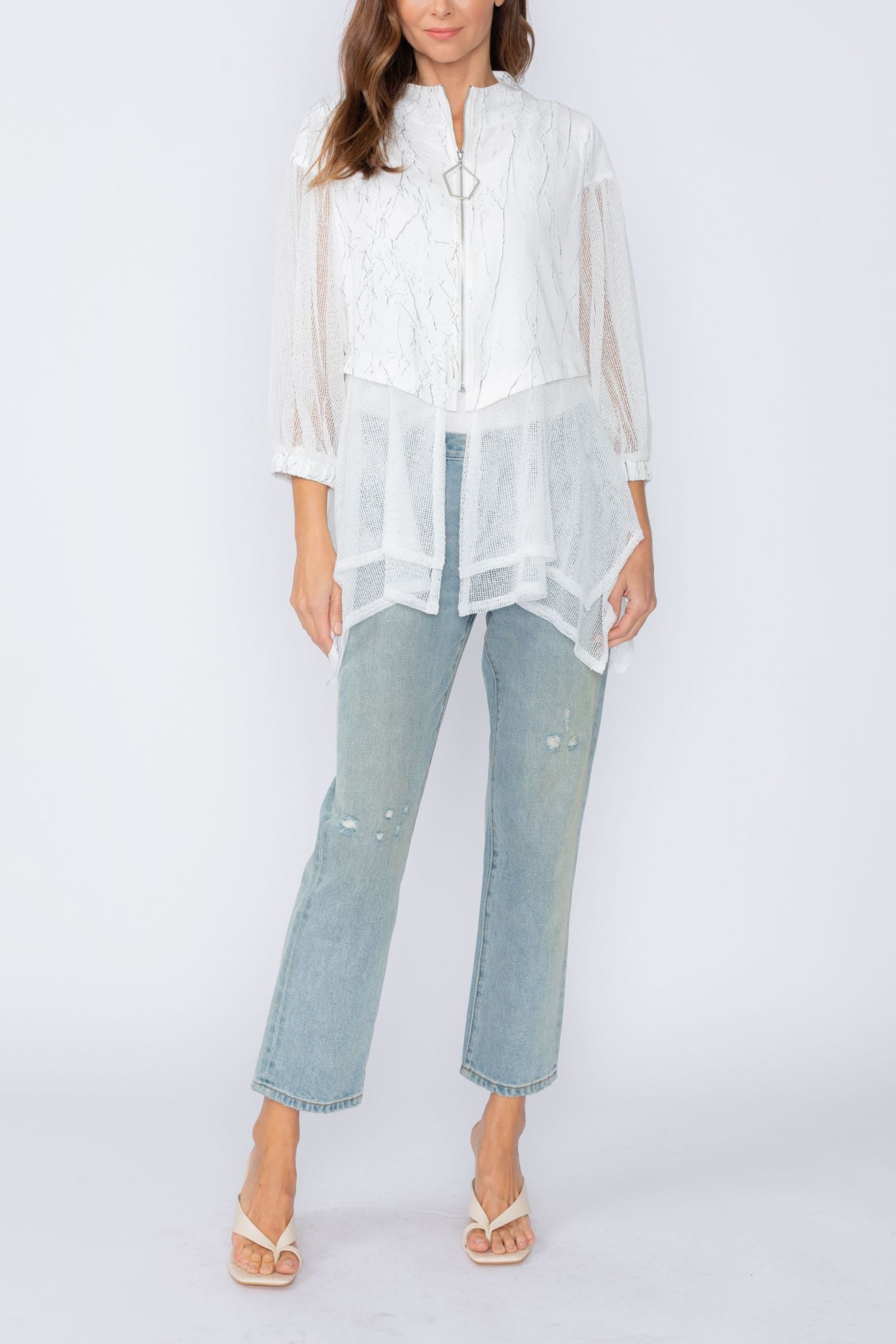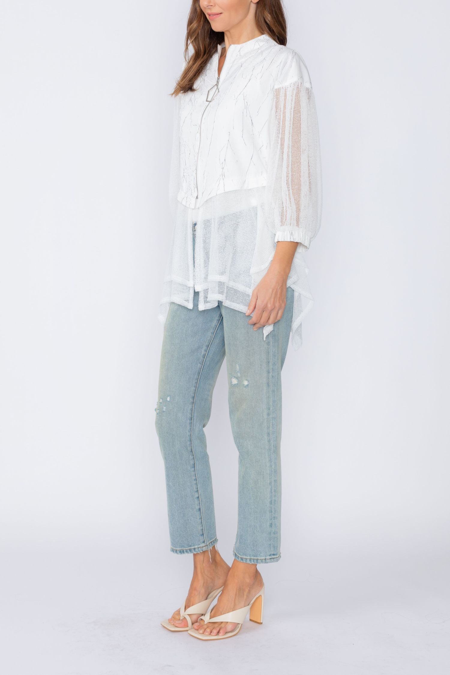 White Zip Front Top With Mesh